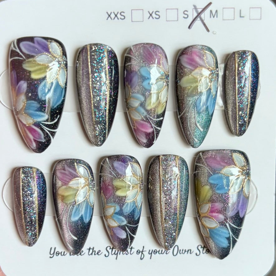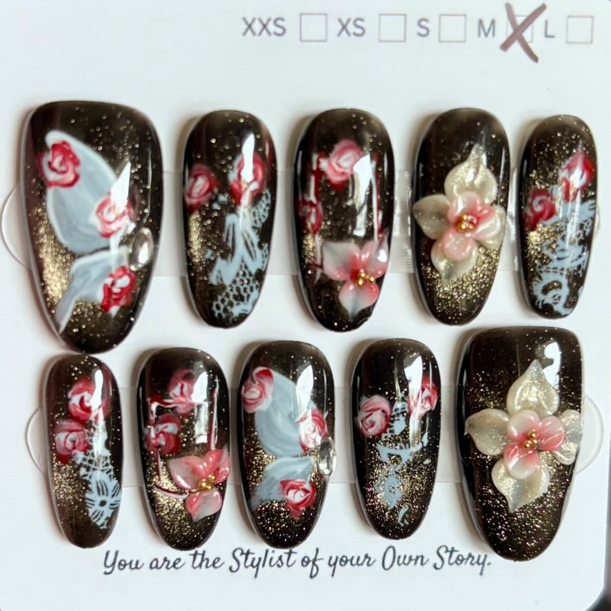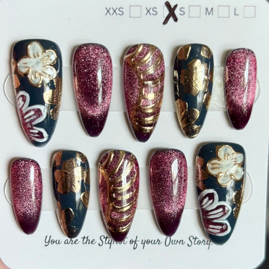 These handmade Press On Nails are all reusable, made with high quality material and handmade. I personally didn't create these, however, I wanted a way to keep up with inventory and always have a variety of styles available to you all.