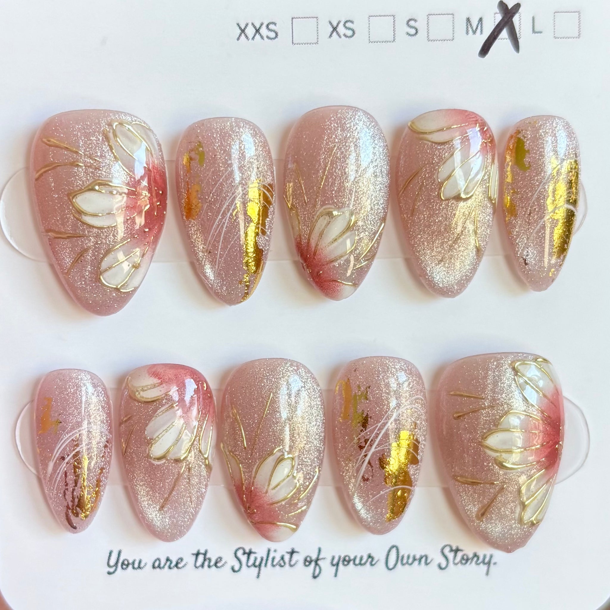 These handmade Press On Nails are all reusable, made with high quality material and handmade. I personally didn't create these, however, I wanted a way to keep up with inventory and always have a variety of styles available to you all.