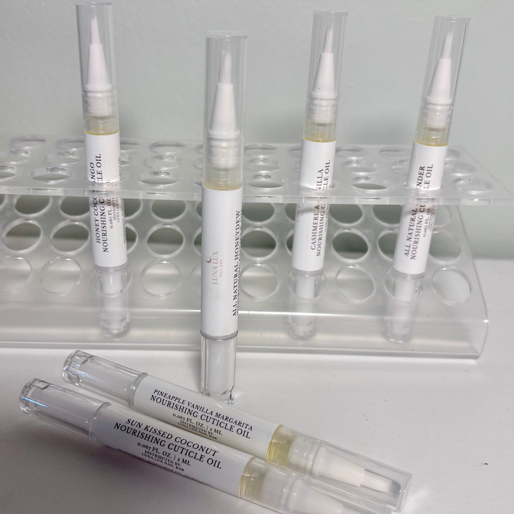 Each cuticle pen is handmade, hand-poured, hand-labelled and hand-bottled. Distributed by Luna Lux Nail Bar! We know you'll love it!